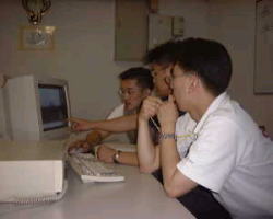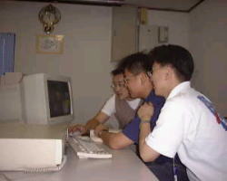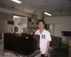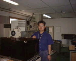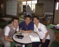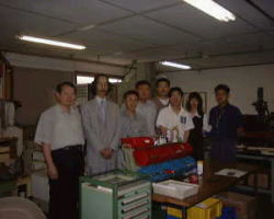 毎年恒例となりましたソウル産業大学との交流の一貫であります、学生の現場 実習受入れは第5回目を数え、7月12日から26日まで2週間行いました。今 年は3名の学生が来犬。CADを使って金型の設計の勉強、ワイヤ放電や型彫り 放電加工の実習、休日には観光サイクリングなど、2週間を満喫していました。